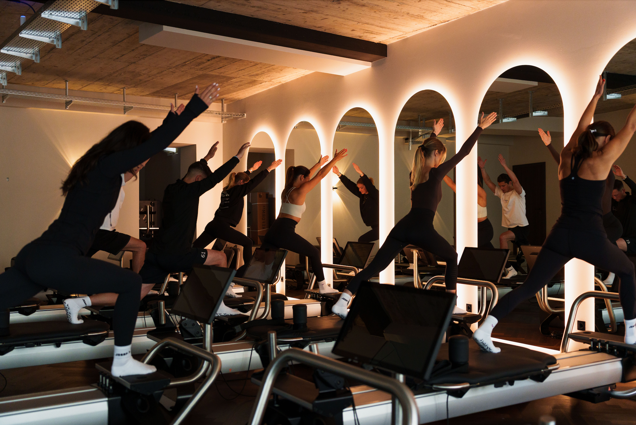 Am Standort Tegernsee haben wir 10 Pilates Reformer Geräte, welche alle mit einem Bildschirm ausgestattet sind. Damit kannst du sowohl an Gruppenkursen mit Trainern teilnehmen, dich aber auch in den Zwischenzeiten der Gruppenkurse einbuchen und individuell für dich mit dem Bildschirm und Videoanleitungen trainieren.